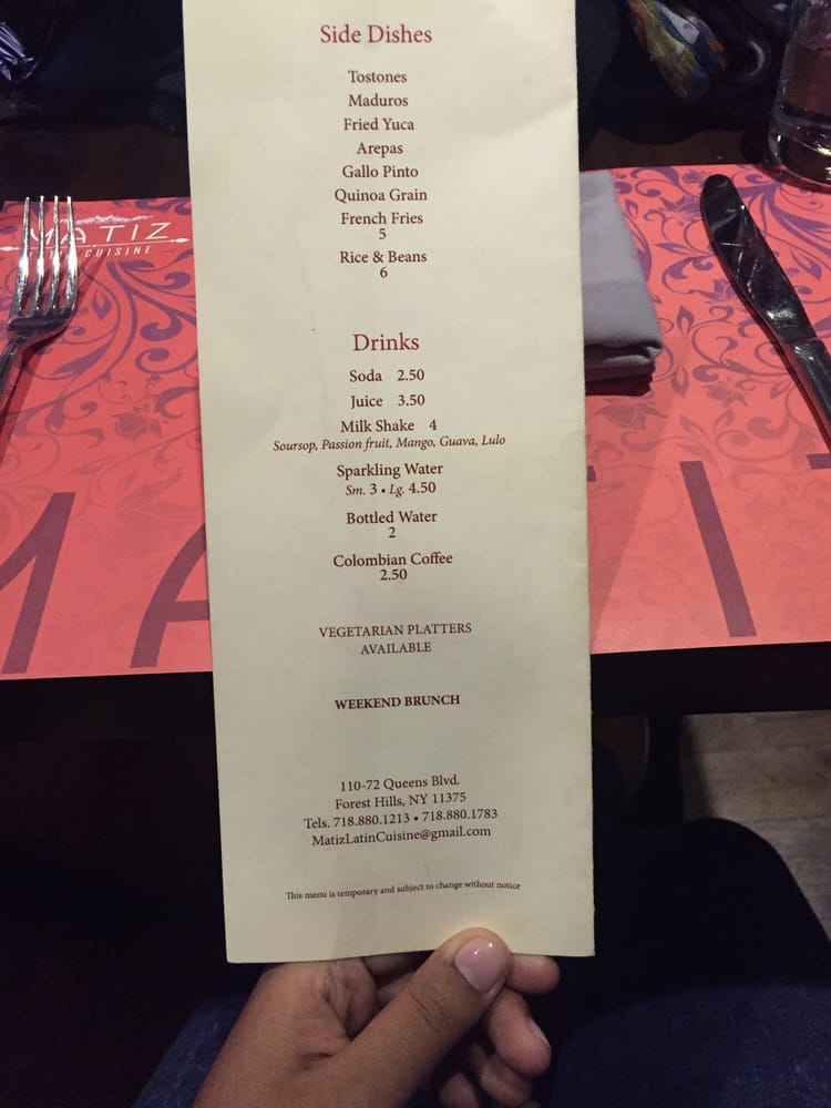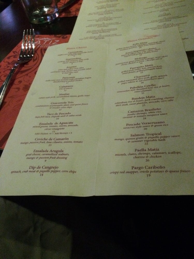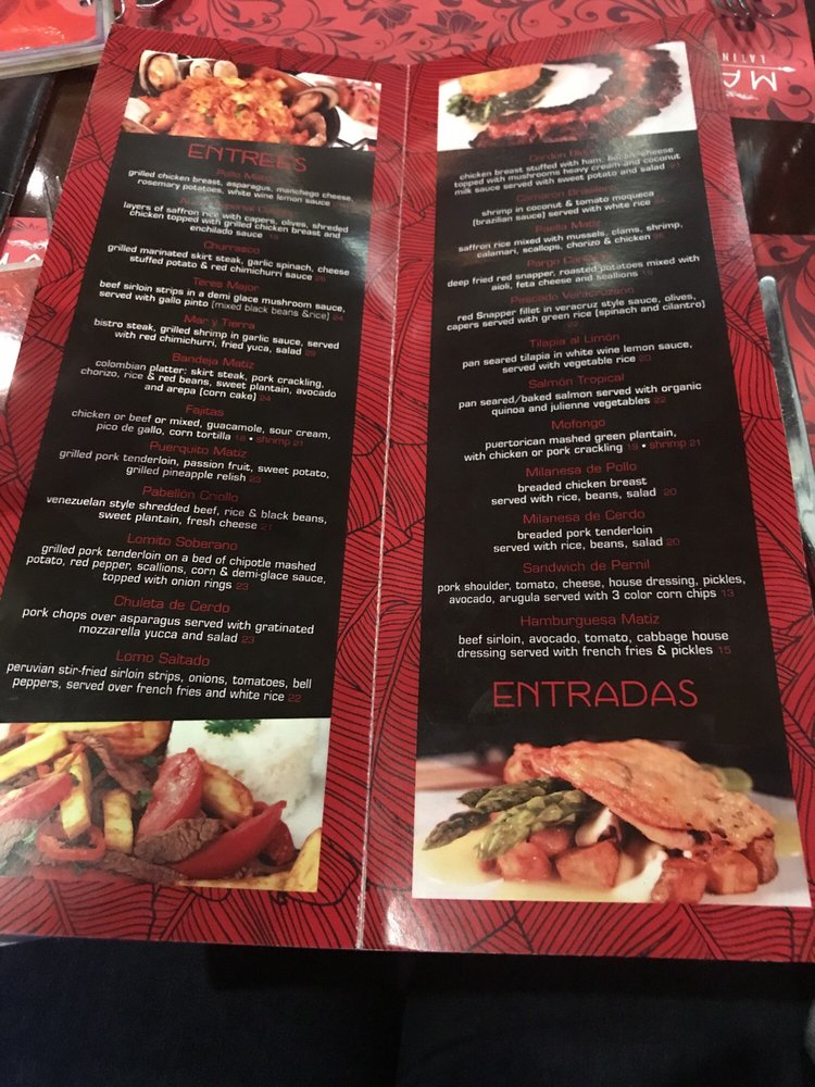 Introducing Matiz Latin Cuisine, a vibrant Latin American bar located at 11072 Queens Blvd Forest Hills, NY offering a range of amenities such as outdoor seating, waiter service, and a full bar. The menu boasts tantalizing signature cocktails like the Bramble and Caipirinha, along with delectable appetizers including Arepitas and Ceviche de Camaron. Their Margaritas are a must-try, available in various flavors and sizes. Customers praise Matiz for its fantastic food, pleasant ambiance, and attentive service. Reviews highlight the delicious paella, flavorful steak, and generous portions. Live music adds to the inviting atmosphere, creating a memorable dining experience. With diverse and mouth-watering Spanish dishes, Matiz Latin Cuisine is a must-visit for those seeking an authentic taste of Latin flavors in a cozy setting.
